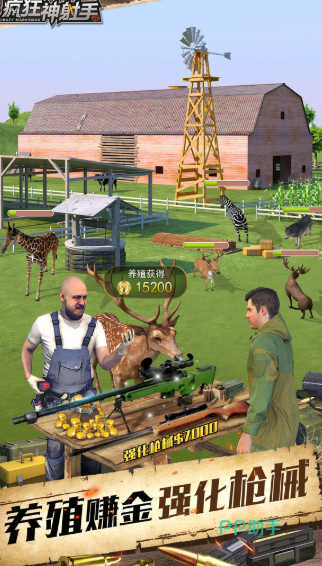 荒野猎场寻挑战,枪林弹雨夺桂冠,玩家化身精英猎手参与赛事争夺冠军,在雨林,荒漠等不同主题猎场狩猎,玩家可使用200多种枪械完成任务,还能自建养殖场培育动物换取资源强化装备,真实荒野生态还原,动物反应逼真提升代入感,还有竞技场对战模式,同时每日登录可领取海量钻石,降低装备获取难度,荒野狩猎多刺激,装备强化无压力。