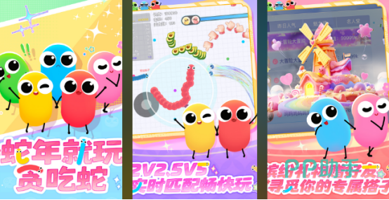 由传统单机玩法升级为强交互多人竞技模式,提供2v2对抗、5v5混战等多种组队形式。地图实时刷新,道具随机掉落,配合流畅操作手感与高辨识度蛇身特效,营造紧张又欢乐的对战氛围。目前已上线超30款主题皮肤,每日登录即可领取资源奖励,达成三杀成就后将获得专属称号加成。