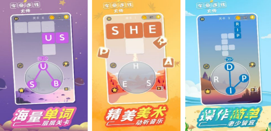 采用字母网格布局,玩家通过滑动连接相邻字母组成有效英文单词完成消除。每关设定目标分数或清空全部字母方可通关,词库覆盖小学阶段核心200词,支持横向、纵向及对角线拼词,锻炼词汇联想与拼读意识。