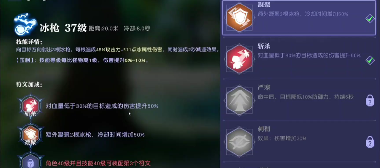 法师连招体系强调控血阈值与爆发节奏协同。该职业需主动将自身血量维持于半血(50%)或更低至约8%区间,以稳定触发逆境加成效果。同时,暴击率堆叠为关键养成方向,直接影响冰枪伤害倍率及技能冷却重置概率。标准起手式为开启冰盾达成瞬时免伤,随即释放冰枪打出高额爆发——此操作可激活“冰枪大师”被动,进一步提升暴击率与最终伤害加成,形成“防御—输出—增益”三段式循环。
