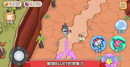 游戏构建了一个手绘质感的幻想空间,故事围绕布鲁伊试图找回被爸爸收走的“魔法金笔”展开。玩家需操控角色穿越树屋走廊、云朵滑梯、书页迷宫等特色关卡,在滑翔、跳跃、机关触发等轻度操作中完成路径解谜。过程中穿插收集线索、辨识图案、匹配颜色等适龄挑战,既延续原作亲子互动内核,又自然融入基础认知训练。