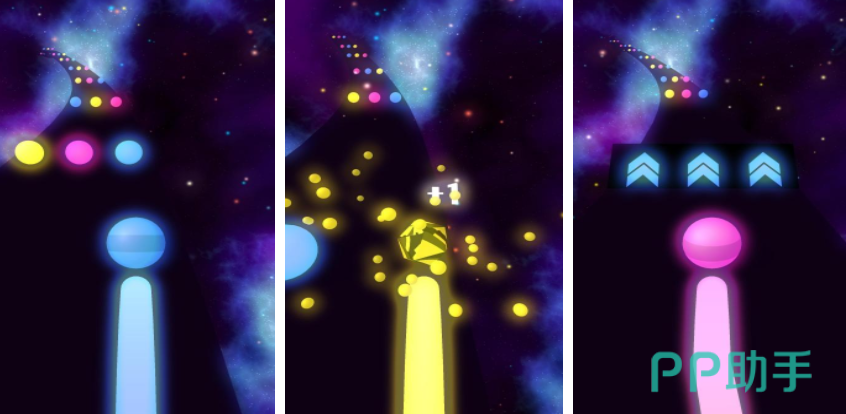 游戏构建于浩瀚星空场景之中,大量动态悬浮的彩色球体沿轨道运行。玩家操控主球前行,需依据实时变化的球体颜色,在恰当时机滑动屏幕,使其与同色小球精准碰撞。误触异色球将导致挑战终止。关卡配乐节奏鲜明,视觉反馈与音频节拍高度同步,形成兼具观赏性与疗愈感的节奏体验。