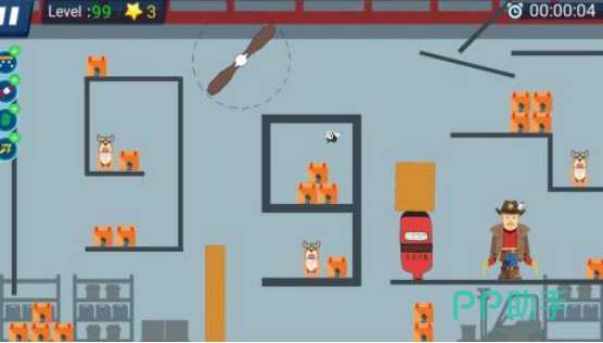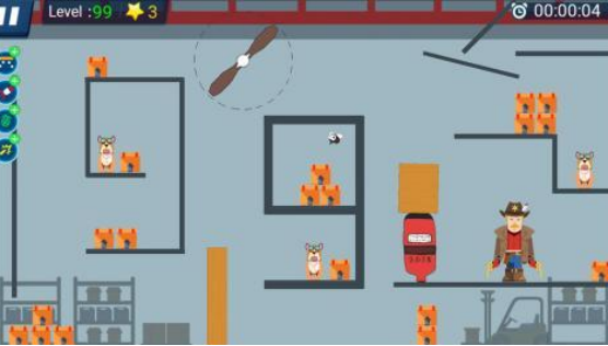本作构建在一个色彩明快的卡通世界中,玩家需操控角色发射子弹,借助墙壁反弹、重力下坠、障碍折射等物理机制,精准命中指定目标。区别于传统对战型FPS或TPS,该游戏弱化实时对抗,强化解谜逻辑与空间预判能力。每一关都设有独特机关布局,仅靠反复试错难以通关,必须结合角度、力度与时机综合判断,方能达成三星评价。