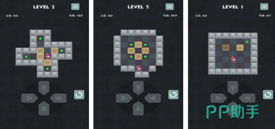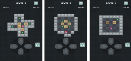 海量精心设计的关卡内容应有尽有,每个关卡开始之后都会看到一个小人物,需要在错综复杂的仓库当中完成推箱子的任务,这些这箱子摆放的位置是完全不同的,大家需要合理规划路径,正确推箱子,将箱子推到指定的位置上就能完成闯关,但是需要注意的就是,每个箱子只能推动一次,可通过向上或者是向下等。不同的方向完成推动,但是却不能穿越墙壁,更不能走入死胡同。