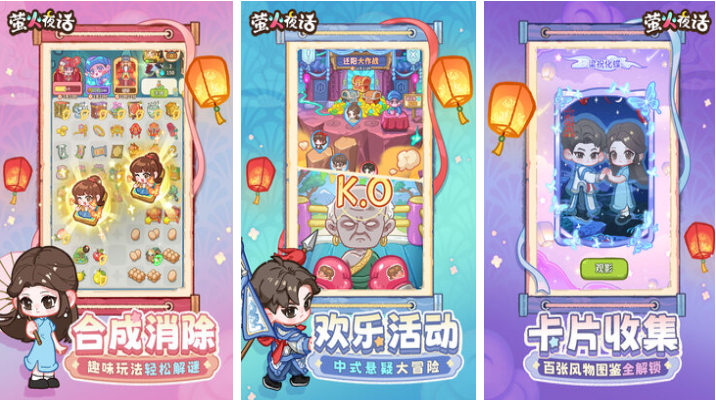 作为纸嫁衣IP延伸开发的轻度向休闲手游,《萤火夜话》采用清新卡通画风重构传统民俗世界观。核心玩法围绕三消合成展开,结合卡牌收集、剧情解谜与限时活动任务,营造轻松解压的游戏氛围。角色设计延续纸嫁衣系列辨识度,同时通过差异化美术风格降低题材厚重感,形成独特视觉记忆点。