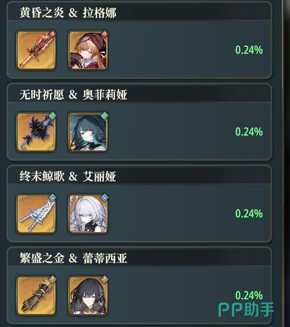 风系:无时祈愿&奥菲莉娅、古咒文典籍&塞拉、天光&米兰迪、晨昏指南&兰朵莉亚、幻境&雷娜、斯文托维特