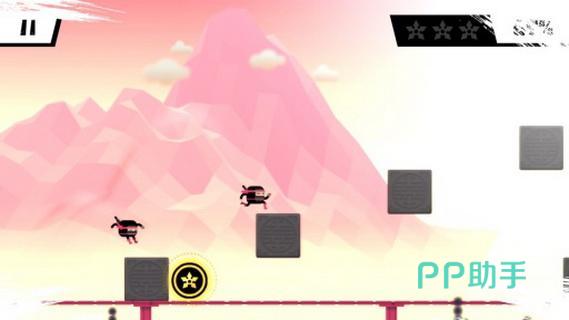 采用轻量级像素美术风格,两位主角体型小巧但动作帧数饱满,起跳、滑铲、二段跳等基础动作均配有细腻过渡动画。关卡结构强调空间错位与时间差挑战,例如需一人触发压力板延缓陷阱启动,另一人趁机穿越;任一角色滞留超时即导致流程中断,强制要求全程同步推进。背景叙事穿插于过场插画中,讲述双生忍者执行隐秘任务的主线脉络。