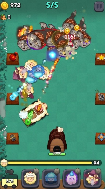 本作以森林为战场,采用塔防+射击双轨机制。玩家操控小绵羊布防阵地,通过升级武器、释放技能抵御狼群进攻。敌方单位分为普通小狼与高血量狼王两类,后者需集火应对。关卡覆盖多种地貌环境,从晨雾林地到月光苔原,场景变化强化战术适配性。防守节奏紧凑,操作反馈清晰,适合偏好轻策略快节奏对抗的玩家。