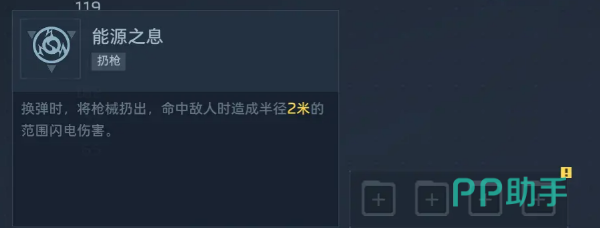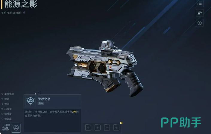 其核心机制之一是主动技能“浮游模式”:开启后,能源之影将脱离手持状态,转化为一枚具备自主索敌与持续攻击能力的浮游炮。该浮游单位将在玩家周围半径约5米范围内高速巡弋,并自动锁定最近威胁目标进行高频率精准射击。实测数据显示,浮游炮单次攻击基础伤害为185点,射速达每秒4.2发,且全程不占用玩家主武器操作权限——这意味着玩家可同步使用主武器完成压制、点杀或战术移动,实现真正意义上的双线火力覆盖。对新手及中低操作水平玩家而言,该机制大幅降低了输出断档风险,有效缓解团战压力。