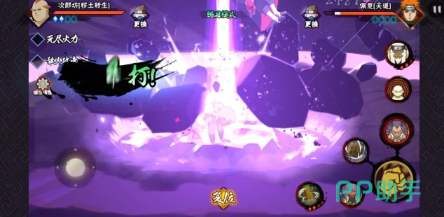咒印下的次郎坊就更让人惊叹了,一技能遁地抓取,二技能跳起来飞天扔巨石,而且还能抓取,在咒印状态下再次点击奥义按钮就会变回普通状态,而普通状态下的技能是独立的,这样秽土小胖立马又能使用刷新好的普通状态里的技能,也就能够在对手没有豆的情况下一套技能连发轻轻松松KO对手
