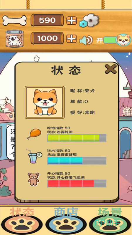 由独立开发者打造的深度模拟向作品,聚焦真实养宠逻辑。内置斗牛犬、金毛寻回犬、雪纳瑞等八类可选犬种,每种均有差异化成长曲线与性格倾向。核心数值系统涵盖饱腹值、水分值、亲密度、活力值四大维度,需定时干预以维持健康阈值。互动模块包含训练指令(坐下、握手)、趣味小游戏(接飞盘、寻宝)及环境探索(阳台晒太阳、客厅追逐光斑)。音效设计高度还原犬类发声特征,搭配柔和背景音乐,营造强代入感的家庭陪伴氛围。