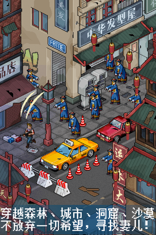 本作采用复古像素美术风格,构建了一个高自由度的末日开放世界。玩家可无拘束地穿梭于城市废墟、荒野村落与地下设施之间,搜刮食物、净水、弹药及建材。系统内置超50种可拾取/制造的武器与防护装具,关卡设计呈阶梯式递进,兼顾新手引导与硬核挑战。叙事线聚焦人性抉择与道德困境,随剧情推进,角色将从初入险境的普通人逐步成长为冷静果敢的生存专家。