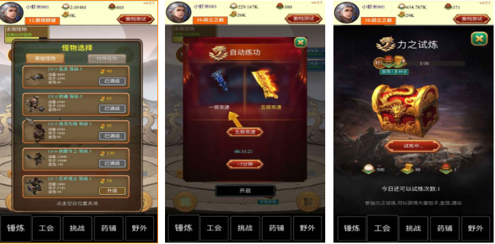 融合挂机成长与主动点击的混合型RPG。玩家可设置自动战斗模式,同时保留关键节点手动干预权限——例如针对高威胁敌人实施集中点击输出。技能树支持自由升级路径,装备系统提供合成配方,宠物孵化机制贯穿主线进程。整体难度曲线平缓,新手友好,但高阶挑战仍要求稳定的手指点击速率以应对密集弹幕式敌人刷新。