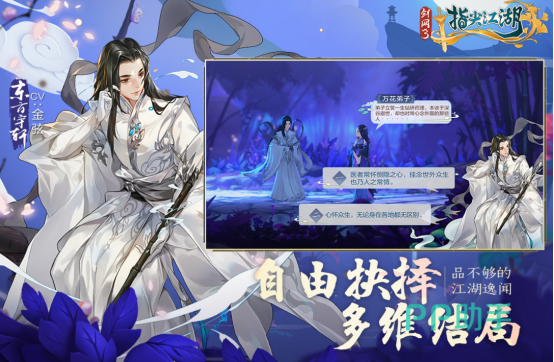 以东方水墨美学为基底,运用晕染、留白、飞白等技法构建视觉语言。雪山、桃花镇、竹林小筑等场景随昼夜更替呈现不同光影层次。剧情采用分支叙事结构,玩家选择影响门派归属、侠名声望及结局走向;角色创建支持男女双性别,基础属性成长曲线差异化设计,确保不同路线均有策略纵深。