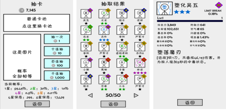 主打低操作门槛高策略深度的挂机卡牌玩法,核心循环围绕“抽卡—养成—自动战斗”展开。卡池包含数百张抽象风格卡通角色卡,每张卡具备唯一技能类型(如AOE、护盾、反伤)、星级成长线与羁绊激活条件。资源获取依赖稳定掉落与保底机制,十连抽必出稀有卡设定提升收集确定性。战斗过程可视化呈现技能动画与数值反馈,支持离线收益积累,兼顾休闲玩家时间弹性需求。