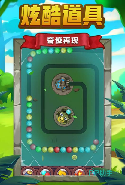经典球链消除玩法的现代化演绎。轨道上滚动的彩球按固定序列排列,玩家发射同色球形成三连及以上即可消除。新增能量槽系统,连续消除可积攒能量释放全屏清除、颜色转换等特殊技能。关卡设置动态障碍球、隐形球、锁定球等变异元素,配合倒计时压力机制与路径预判提示线,兼顾操作精度与策略规划。