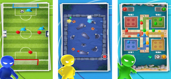 《多人竞技场》采用俯视角构图,支持四人同场对抗或组队协作。游戏内置多个独立小游戏单元,如物理弹射踢球、策略飞行棋、障碍竞速等,每种模式均适配1—4人参与,并设有动态难度调节机制。角色形象风格统一且富有辨识度,新手引导流程完整,兼顾策略深度与操作友好性,是兼顾趣味性与公平性的多人向竞技产品。