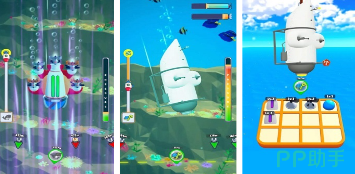 一款主打生态观察与视觉疗愈的休闲向潜水游戏。玩家以自由探索方式穿梭于珊瑚群落、海草林与热泉口之间,识别并收录超过200种海洋生物,每种物种均配有科学图鉴说明与行为动画。界面采用柔和渐变色调,鱼类游动轨迹符合流体力学逻辑,发光生物具备自定义亮度调节功能。通过完善观察日志,可逐步解锁更深海域及专属水族箱装饰模块。