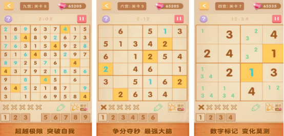 本作提供四宫格、六宫格、九宫格三重难度体系,覆盖从入门到进阶的完整成长路径。六宫格关卡占比突出,题目布局经过算法校验,预设数字具备唯一解特性,杜绝歧义干扰。玩家需在限定时间内完成填空,系统内置智能提示与候选数标记功能,支持逐步验证逻辑链,降低试错成本,强化正向反馈机制。