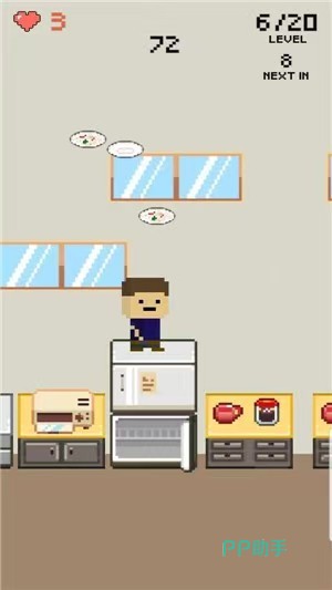 设定于趣味厨房场景,玩家控制角色以头部承接自上而下连续坠落的飞盘,并将其运送至指定收纳点。通过滑动实现左右移动与跳跃动作,结合重力模拟与碰撞反弹机制,要求玩家掌握落点预判与身体平衡。失败判定为飞盘触地,挑战强度随节奏加快与路径复杂度提升而递增。