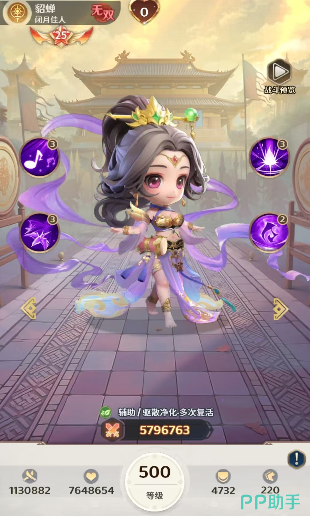 位列第四的无双貂蝉,是当前版本稀缺的战术型辅助。她拥有驱散敌方增益、降低目标命中率、复活己方单位等多项关键功能。技能可对单体造成伤害并清除其所有增益效果;大招则先按比例吸收全体友方当前生命值,再将总吸收量平均分配并返还,实现全队血线重置与稳定续航。其机制设计高度契合高压环境下的容错需求,是构筑高强度持久战阵容不可或缺的一环。