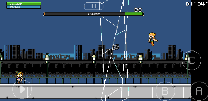 本作以经典动漫《JOJO的奇妙冒险》为蓝本,采用复古像素美术风格重构替身战斗体系。玩家可操控空条承太郎、东方仗助等多代主角,在横版场景中展开高机动性对决。技能释放强调QTE时机与替身特性联动,粒子特效密集且富有辨识度。操作仅需基础方向键+两个功能键,但通过节奏变化与预判博弈实现深度对抗,充分还原JOJO系列“智斗”内核。
