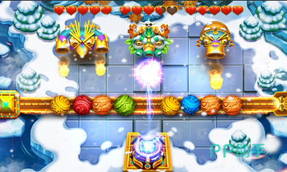 《祖玛世纪》以玛雅文明为视觉母题,重构轨道消除玩法。玩家控制发射器射出彩球,匹配三颗同色球触发消除,阻止球列抵达终点。随着关卡推进,滚动速度递增,特殊球体(如炸弹球、彩虹球)引入变量机制。BGM采用强节拍电子乐,与操作节奏形成神经同步,显著提升沉浸强度与心流体验。