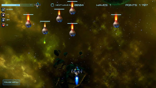 本作构建于末日背景下的深空战场:外星文明突袭地球,玩家化身尼克德莫斯军校特训飞行员,驾驶高性能战机跃入漆黑宇宙,在指定星域执行拦截任务。游戏采用关卡推进结构,每关敌方单位强度与战术逻辑逐级提升。武器系统丰富,支持多套弹道组合与战术切换;射击反馈强烈,子弹出膛伴随粒子光效与动态镜头震颤,密集弹幕覆盖全屏,带来高节奏对抗体验。