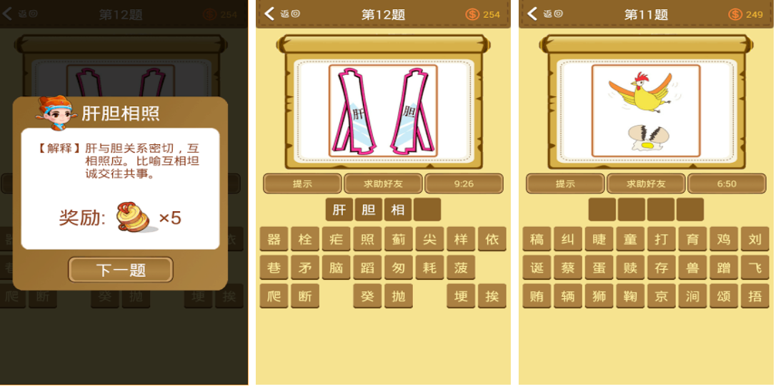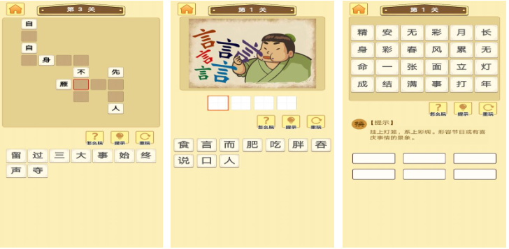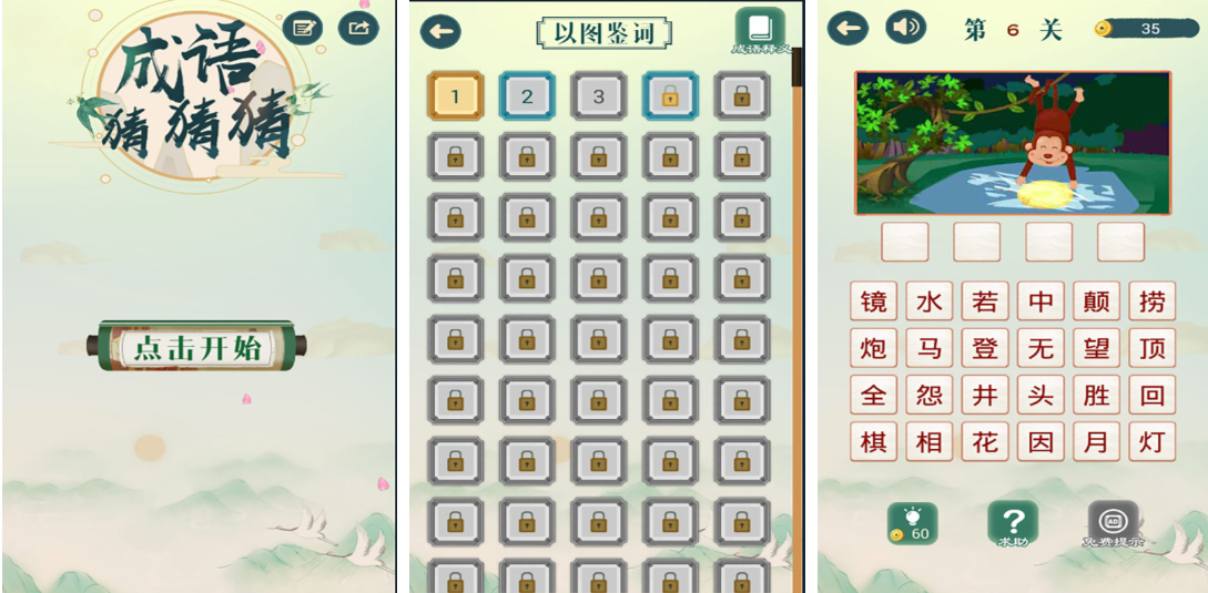 采用渐进式难度曲线,前期侧重生活化成语与常见典故,后期逐步引入出自《左传》《史记》《世说新语》等典籍的高阶表达。所有图片均经专业美术重绘,确保视觉传达准确性;汉字拼组环节支持笔顺动画演示,辅助用户掌握结构规律与书写规范。