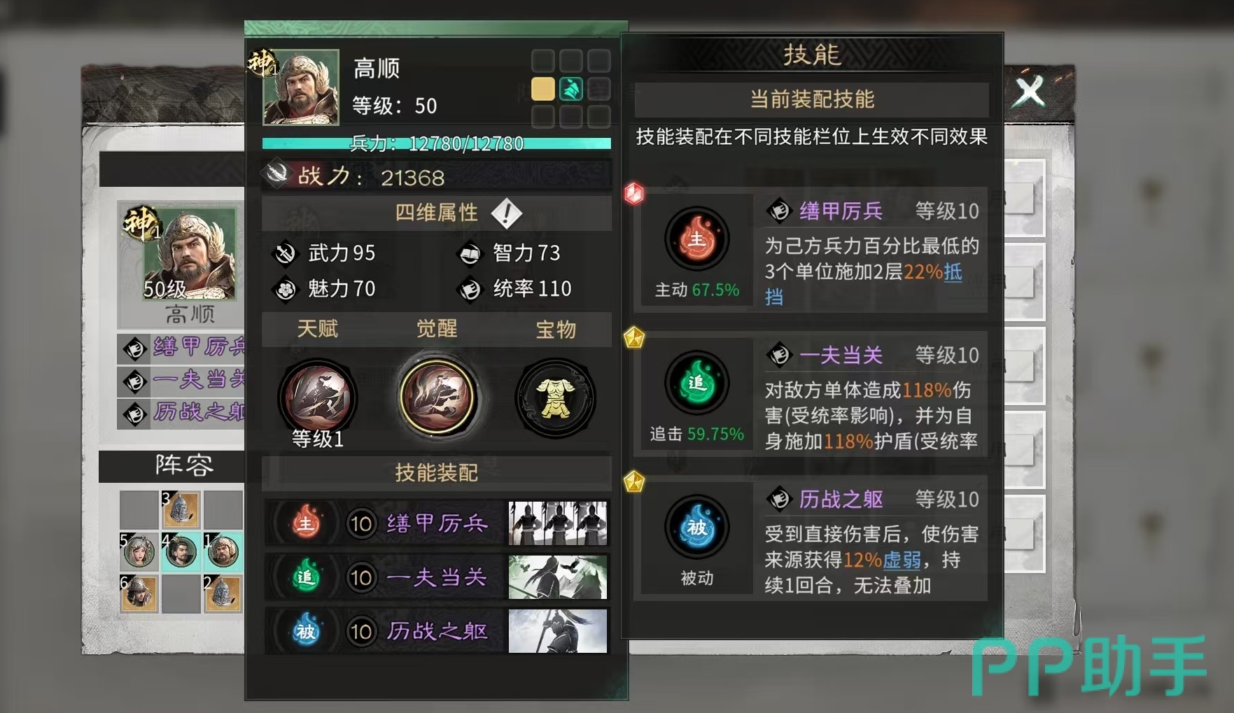 该阵容在PVE推图、资源副本及部分竞技场场景中表现突出,凭借高频召唤物轮动与多层格挡覆盖率,显著提升容错率与战斗稳定性。如需组建高性价比群雄召唤体系,高顺无疑是不可替代的战略级选择。