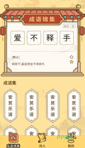 打造个性化成语养成空间,通过答题获取“营养液”,用于浇灌对应难度的虚拟花朵。基础成语对应常见花种,高阶成语解锁稀有品种,并同步开放配套典故插画——画面精准还原“刻舟求剑”“守株待兔”等场景,帮助用户建立形象化理解路径。