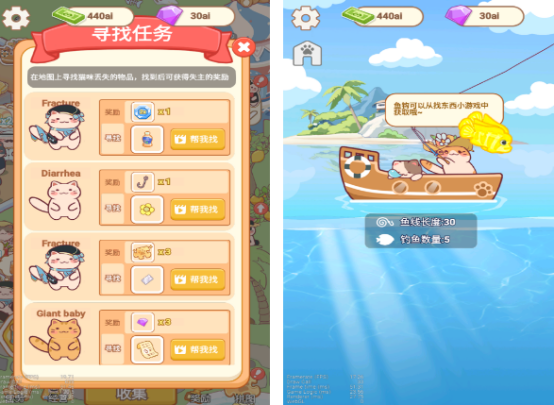 故事围绕一只流浪猫展开——它偶然拾得一支神秘鱼竿,由此开启海边创业之路。玩家将在童话质感的卡通场景中,一边出海捕鱼获取新鲜水产,一边经营一家面向猫咪顾客的海鲜大排档。游戏内置多线剧情分支,NPC猫咪各具个性与饮食偏好,需根据订单需求精准烹饪对应菜品。渔获种类覆盖近海常见鱼虾蟹贝,并引入天气系统与潮汐机制影响出钓效率,强化模拟真实感。