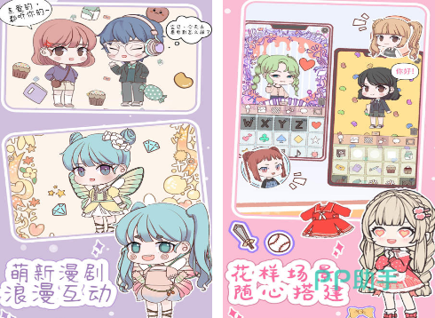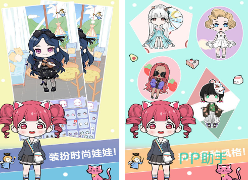 采用清新Q版美术风格,整体画面柔和细腻,角色建模圆润可爱。玩家可从数百套服装中自由组合,涵盖日常、节日、校园等多种主题;支持面部微调、发型更换及动态姿势设定,并内置拍照功能,可将成品保存为高清图片或设为设备壁纸。游戏还嵌入轻度剧情线,让换装过程更具代入感与叙事性。