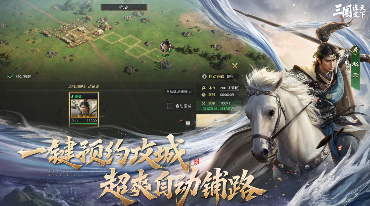 热衷三国故事和战争玩法的朋友可以尝试下三国:谋定天下,这款拥有极致策略元素的军事类手游可以全程挂机,各类战争模式跟三国时代的剧情交相呼应,也有着大量武将和兵种解锁起来无比快速,还设定了自由铺路的系统能让军队快速前进,依旧是写实的场景刻画跟美术风格使人身临其境。