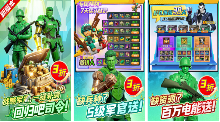 兵人大战是无数军事战争游戏粉丝喜欢玩的策略神作,可以操控的军队都是由玩具兵人组成的,还有着玩具飞机和坦克等多样军事作战单位,众多玩具的加持让这款策略游戏看上去更为怀旧,资源系统超多可以随心所欲强化士兵完成任务,创意工坊系统也会给大家提供源源不断的全新玩法。