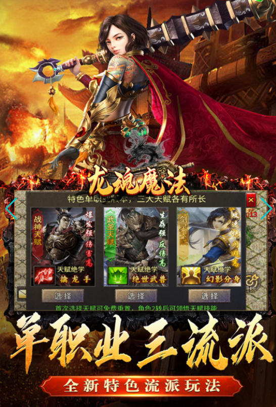 《龙魂魔法》这款游戏是经典老传奇玩法,无论是万人同屏的快感,还是组队打boss的热血都将在本款游戏中复刻。同时为了照顾老玩家和新入坑玩家,玩家上线就会送大量武器装备。而它与其他传奇游戏不同的地方在于它的龙魂觉醒系统,玩家培养角色到一定级别后,则会觉醒天赋,战力将得到质的提升。