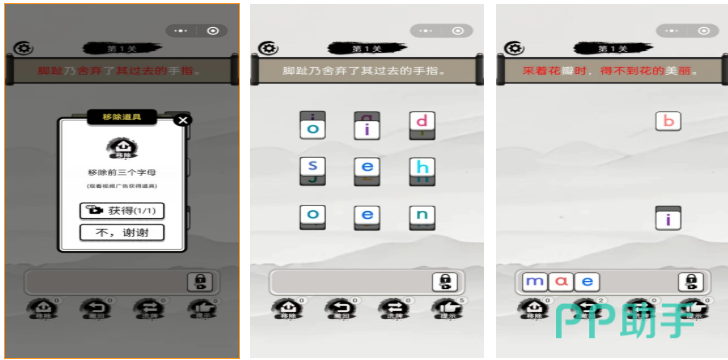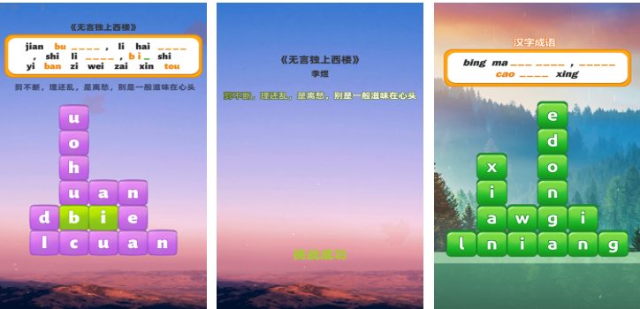 这是款有着暗黑向水墨风格的竖屏操作拼音类手游,拼音互动的游戏模式众多让无数拼音爱好者着迷,益智解谜的元素穿插其中会让大家学会大量拼音知识,利用各种拼音首字母进行组合汉字的设定也很烧脑,拼音知识与水墨背景的结合更是毫无违和,超快的游戏节奏也令每一次闯关都显得格外过瘾,欢迎各位拼音游戏爱好者在这款APP中学会更多拼音知识。