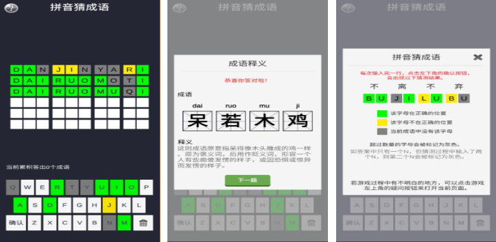 上文介绍的全员都是与拼音相关的休闲益智游戏合集了,朋友们也清楚人气较高的拼音首字母组词游戏下载哪个好了吧,与拼音知识相关的各类游戏内容丰富了大家认知,满屏汉语拼音的画面呈现也让低龄孩子乐在其中,利用拼音首字母组合汉字的设定也极为烧脑。