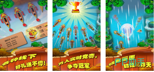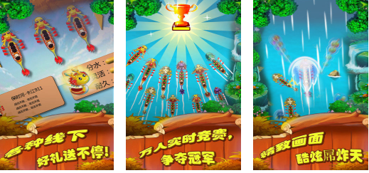 本质上来说本作其实也是划船主题的小游戏,只不过加入了多人竞赛的玩法和各种线下好玩的活动,有着极为炫酷的竞速特效跟精致的美术表现,万人实时竞赛的特色玩法帮助大家成为比赛冠军,水上的竞速地图刻画更是新颖扎实,俯视角控制龙舟前进比赛的设定也带来更多惊喜,越玩越上瘾的游戏节奏更是本作的特色。