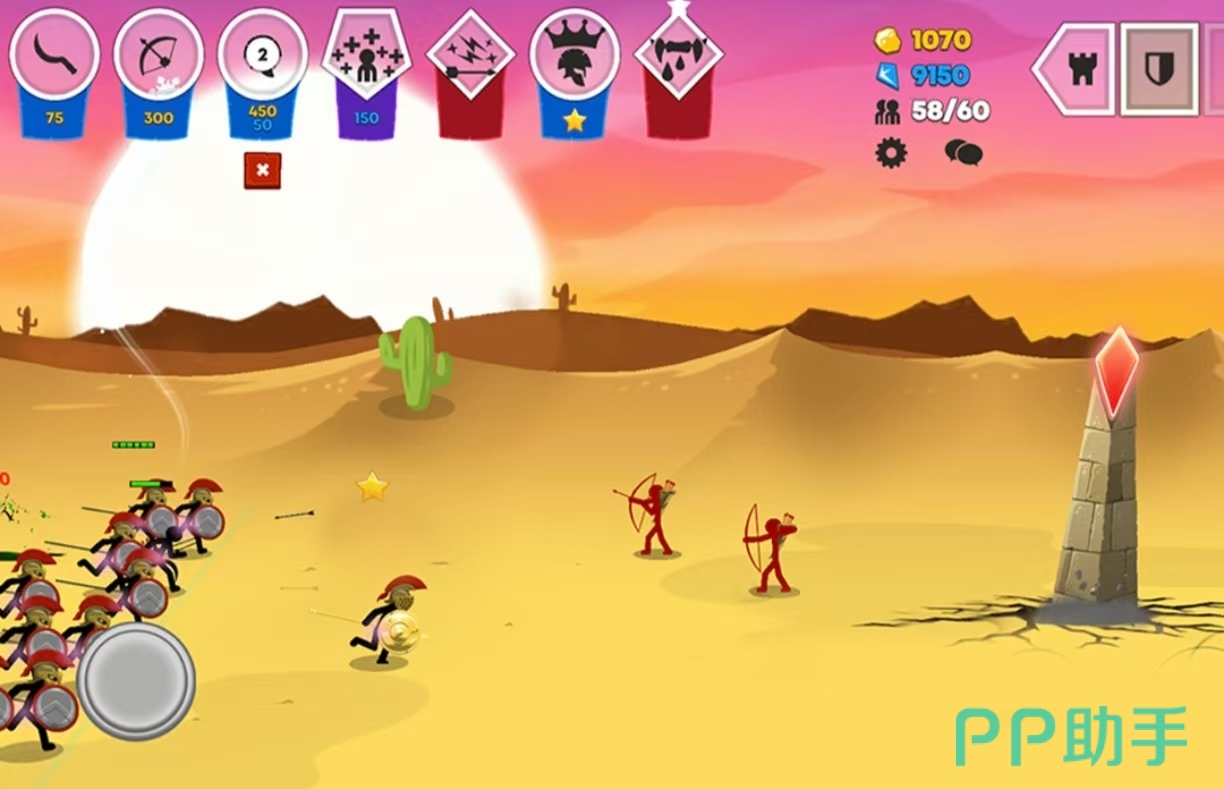 《火柴人大战3》火柴人角色拥有着非常流畅的打击感,可以感受到他们在作战时华丽的特效,可以利用火柴人人物组建一个强大的联盟。将在一个王国世界内开始进行冒险,通过招募士兵的方式来强大阵营,带领着军队逐渐的去完成很多的战斗,最后可以统一整个火柴人王国。游戏里面可以实时的在线进行对战。还可以选择和朋友一起通过组队进行双人作战。
