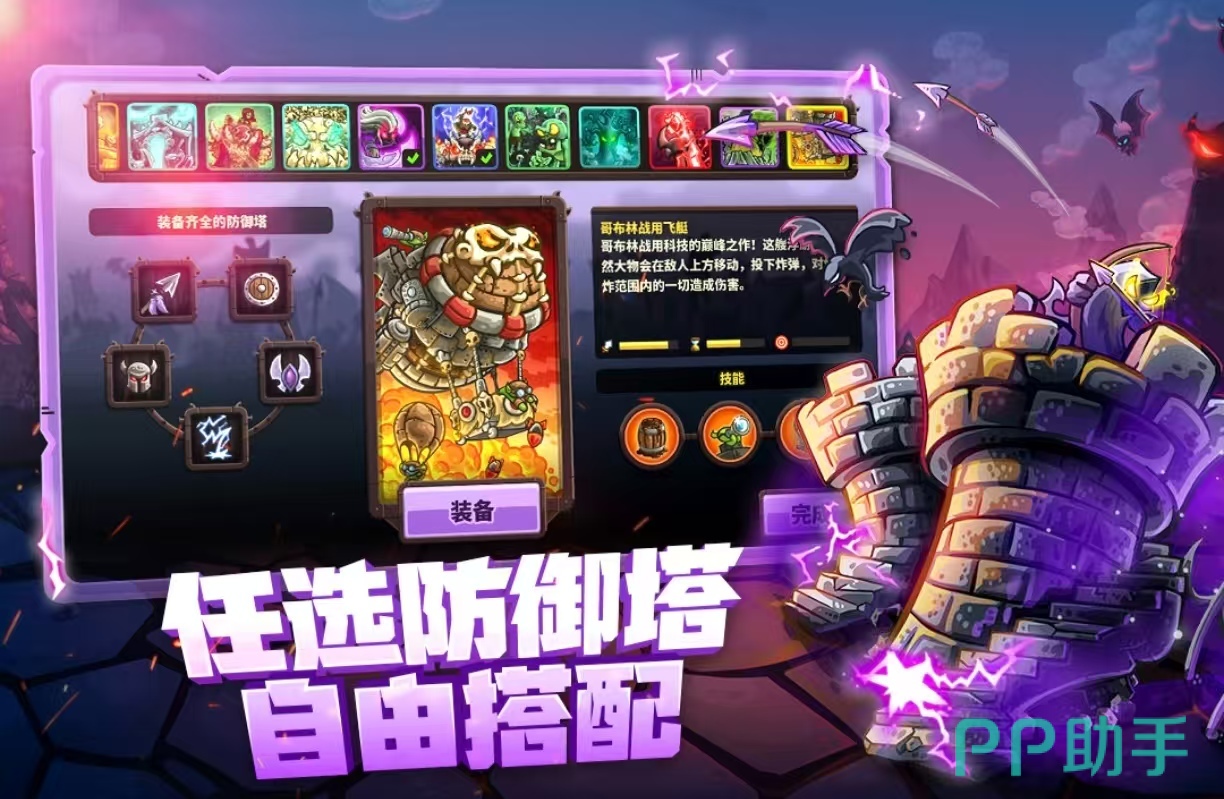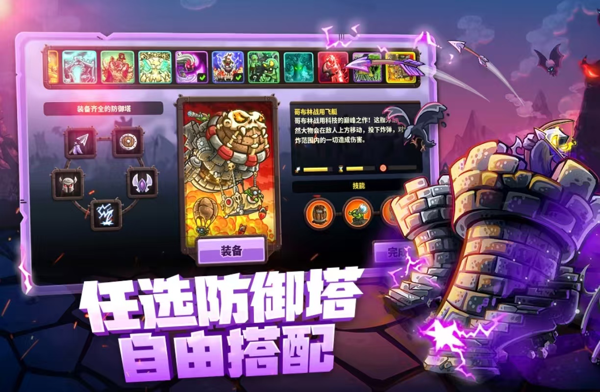 《王国保卫战4》游戏和前几部相比又进行了创新,可以看到画面的色彩更加的鲜艳,玩家则需要作为一个反派人物不断的完成复仇计划。地图上可以看到非常多丰富的场景,很多地方都描绘的非常精致细腻,建筑物的种类又增添了很多。拥有着各种不同样式和风格的防御塔,英雄角色也是各具不同的特色,可以将防御塔自由随心的进行组合,用更强大的杀伤力来面对关卡内的挑战。