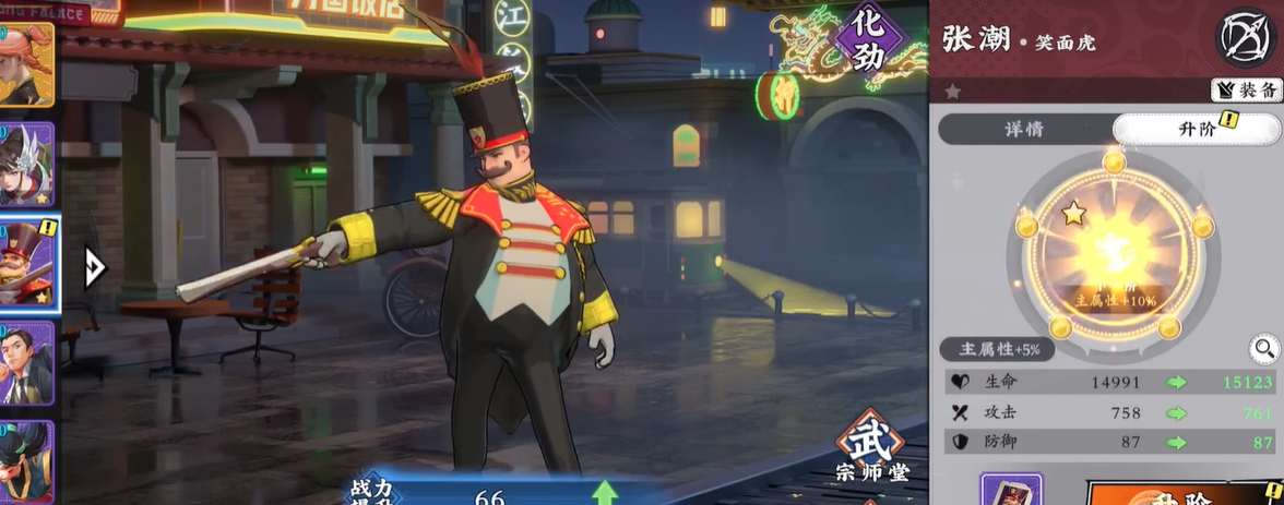 隐龙+虞丹伶+桃姬+李玲珑+张潮是武道风云这款游戏中最具有代表性的爆发变阵流阵容,阵容在组建后将会打造出一个极致爆发对的变形效果。无论从续航能力方面来说,还是爆发力方面来说在战斗中都是非常可观的,有时候爆发能力可能会有所下降,但是根据队伍的熟练度和配合协调能力可以及时的做出调整和改变。隐龙本身就拥有嘲讽、护盾和眩晕的技能,在辅助作战和直接作战时都是一个比较全面性的角色。如果有桃姬的配合,为他提供一个回血和护盾的帮助,整个队伍的生存能力将会大大得到提升。