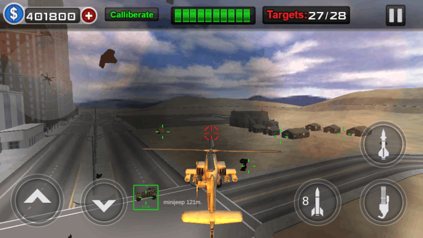 这款游戏主要的优点就是纯粹的直升机格斗玩法,玩家可以驾驶直升机,然后直面应对空中和地面的目标。从敌方直升机到空军基地,全部都可以成为打击的对象。操作的逻辑简单直观,即便是新手也可以迅速的上手,在战斗中就能逐步的提升飞行的技巧,还有射击的技巧。飞机型号的选择比较丰富,每一款直升机都可以搭配不同的武器组合。游戏里面还有奖励机制,观看视频或者更新版本都可以获得福利。