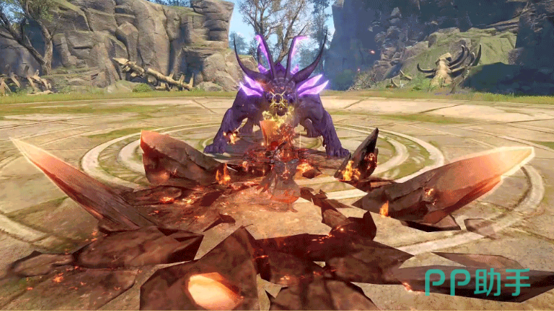 基础连段设计强调状态联动:普攻1为熔岩附臂后的短距爆发拳击;普攻2需在“狂焱”状态下激活,末段可进入持续连打模式,提升压制频率;普攻3则为跃击强化技,在“狂焱”加持下自空中下坠后连续锤地,触发多段岩浆喷发,形成范围控场与持续伤害输出。