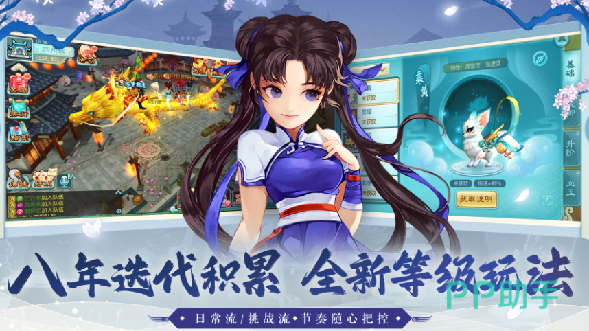 多形态原创宠物系统,多维度策略回合,在这里呈现以隋唐时期为背景,采用q版美术风格设计,细腻地还原了长安城的繁华景象,整体围绕人妖共存的盛唐盛世为特色。在回合制战斗当中,支持一人两友三宠出战,整体的策略深度极高,完整的社交体系,可参与到帮派战争或者跨服竞技中。