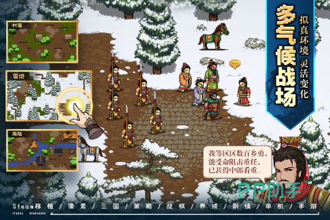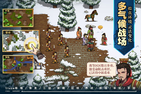 一款像素风的三国战棋游戏,通过纯粹的策略玩法以及简洁的画面吸引了玩家。全像素风格的棋子以及战场地图,看上去比较精致美观。不需要联网就可以体验,在游戏中没有复杂的养成压力,专注的就是棋盘上的博弈,还有走位,大家可以利用空余的时间去体验一下。