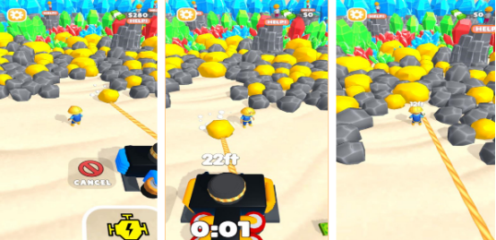 整体的玩法与黄金矿工比较相似,通过操控钩子等方式来探测黄金所在的位置,寻找到位置之后,眼疾手快的判断时机快速挖掘,主题超级丰富,有传统的矿洞,还有奇幻世界,另外又加入冒险元素,为了能够获得更多的黄金道具,玩家可使用炸弹或者双钩,整体的特色十足,比较注重娱乐体验。