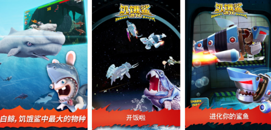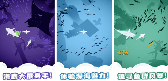 其中的主角是一条过于饥饿的鲨鱼,聚在浩瀚的海洋当中完成自己的进化之旅,周围的各种小鱼小虾都会成为自己的美味食物。因为自己身上的力量比较雄厚,一路披荆斩棘,将凶恶的鲨鱼或者是其他敌人全部击败之后,就能成为真正的海洋王者。没有特别复杂的操作方式,只要合理滑动就可让饥饿的大鲨鱼在海洋中完成进化,还要完成吞噬。