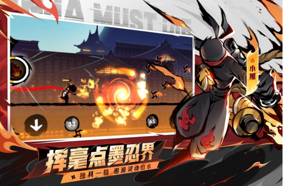 以极简线条勾勒忍者形象,融合高速跑酷、空中格斗与团队协作等创新交互模式。操作界面配备精准触控区域,支持双手协同释放奥义技与闪避动作。战斗系统引入流派概念,各角色拥有专属技能树与大招机制,强调攻防转换节奏与实时应变能力。