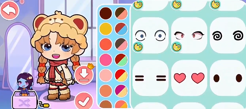 本作画风可爱、色彩鲜艳,不管是角色还是场景的设计都充满童趣,并且除了建造玩法外,玩家还可以亲身参与到制作点心、换装、美容美发的过程中,看着手中角色逐渐变成自己喜爱的摸样,和小镇中动物以及其他角色一起愉快玩耍探索,加强自己的参与感。